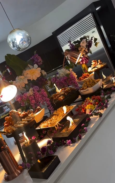Delicious salmon spread over a bed of nachos with jerk sauce